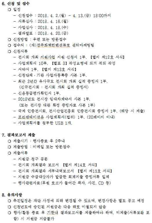 - [공고문] 2018년 경주시 전시회 개최 지원계획 공고0328-1.hwp (92.5K) 351회 다운로드 | DATE : 2018-03-28 00:00:00