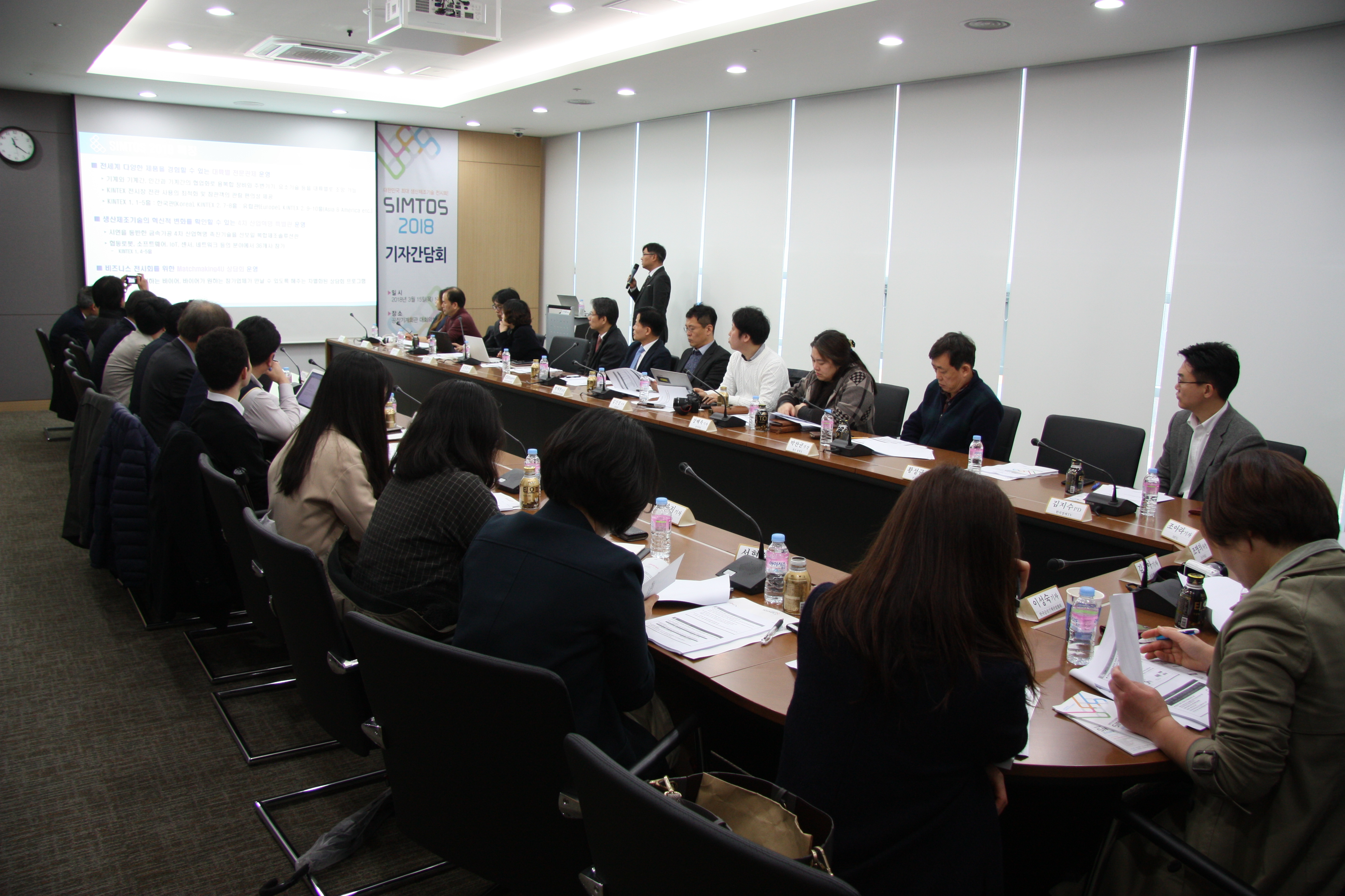 ㅇ 생산제조분야 전문지 및 관련분야 일간지 등 30여개 매체 기자 및 관계자 참석한 가운데 ‘공작기계 산업동향’, ‘SIMTOS 2018 개최 개요 및 특징’, ‘대륙별 전문관제’, ‘4차산업혁명 특별관 구성 의미 및 운영계획’, ‘SIMTOS 2018 주요 부대행사’ 등 소개