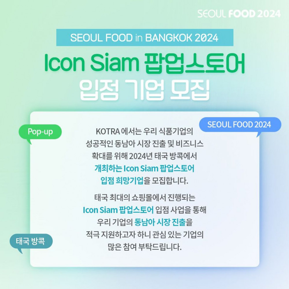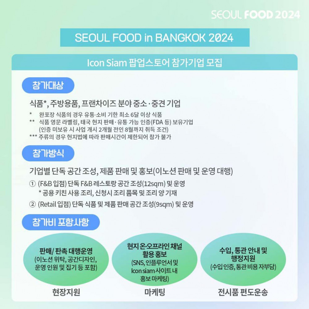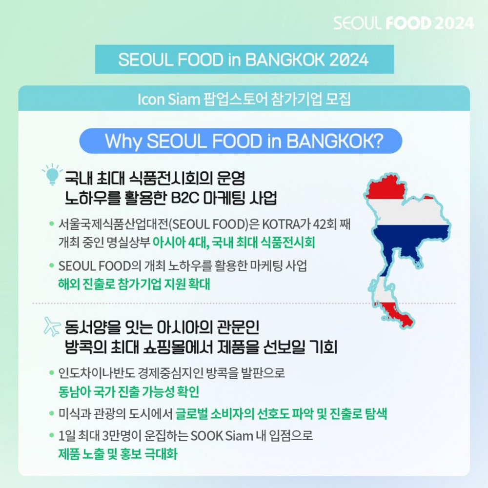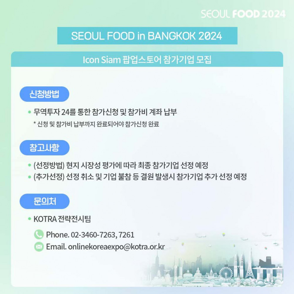 - SEOUL FOOD in Bangkok 2024 B2C 팝업 공고0712ver.pdf (835.9K) 324회 다운로드 | DATE : 2024-07-03 14:13:25