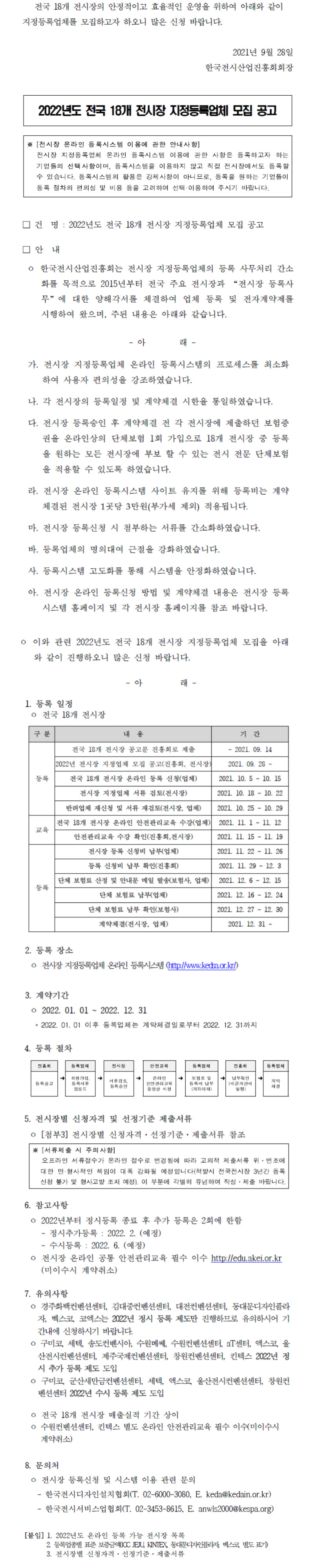 [공고](진흥회) 2022년도 전국 18개 전시장 지정등록업체 모집 공고