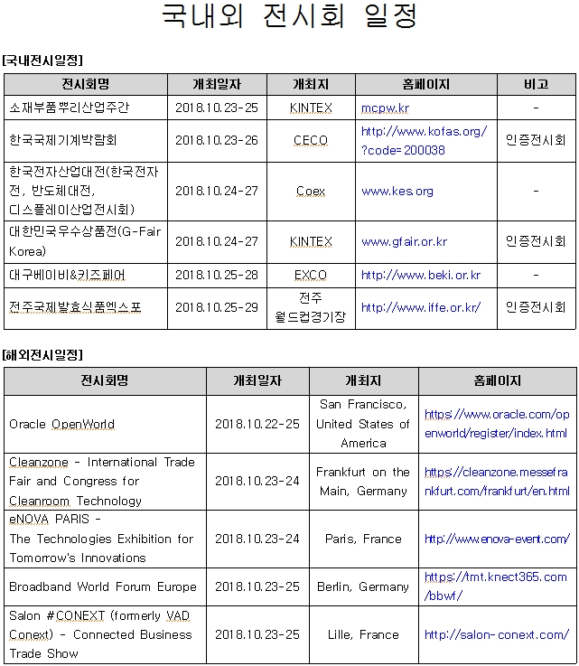 | 제목 | [안내](진흥회) 2018년 10월 4주 전시회 일정 안내 |