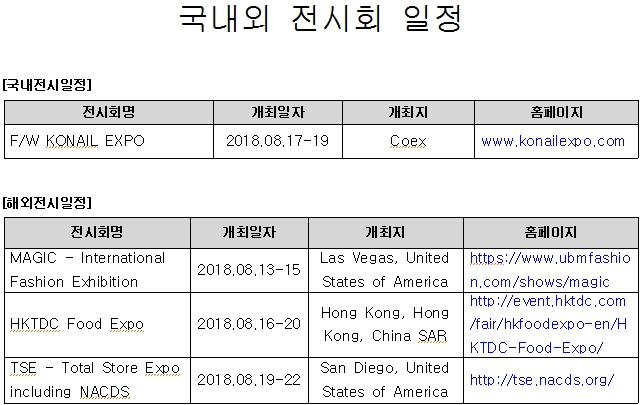[안내](진흥회) 2018년 8월 3주 전시회 일정 안내