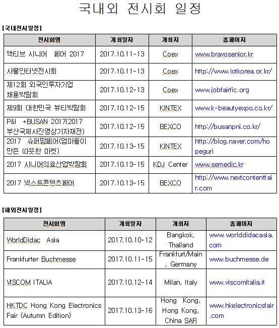 [안내](진흥회) 2017년 10월 2주 전시회 일정 안내