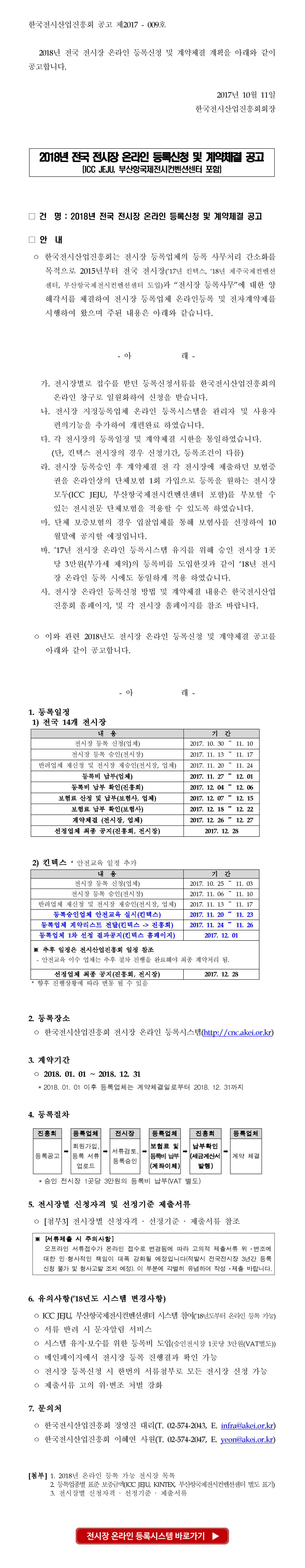 [공고](진흥회) 2018년 전국 전시장 온라인 등록신청 및 계약체결 공고