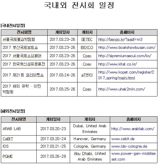 | 제목 | [안내](진흥회) 2017년 3월 4주 전시회 일정 안내 |