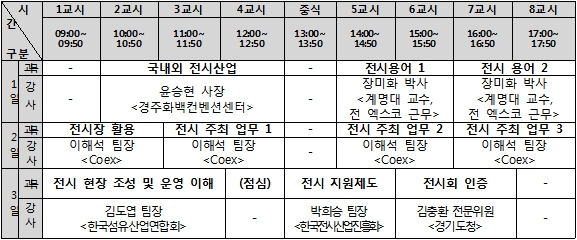 ○ 대 상 : 전시 관련 기업, 학계, 연구기관, 유관기관 등의 신규 입사자, 신규 부임자 등