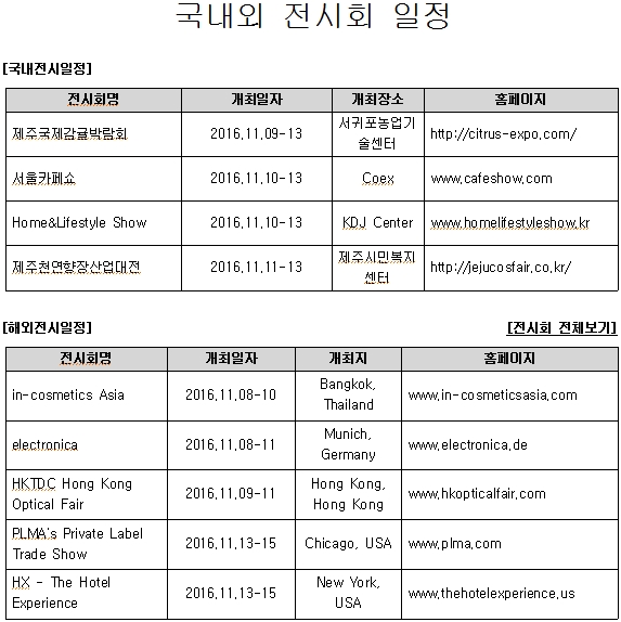 | 제목 | [안내](진흥회) 2016년 11월 2주 전시회 일정 안내 |