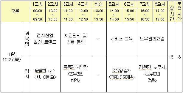 * 과목 및 강사는 사정에 의해 변경될 수 있습니다.