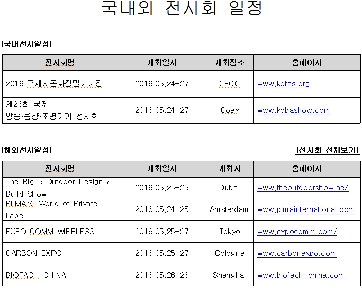 | 제목 | [안내](진흥회) 2016년 5월 4주 전시회 일정 안내 |