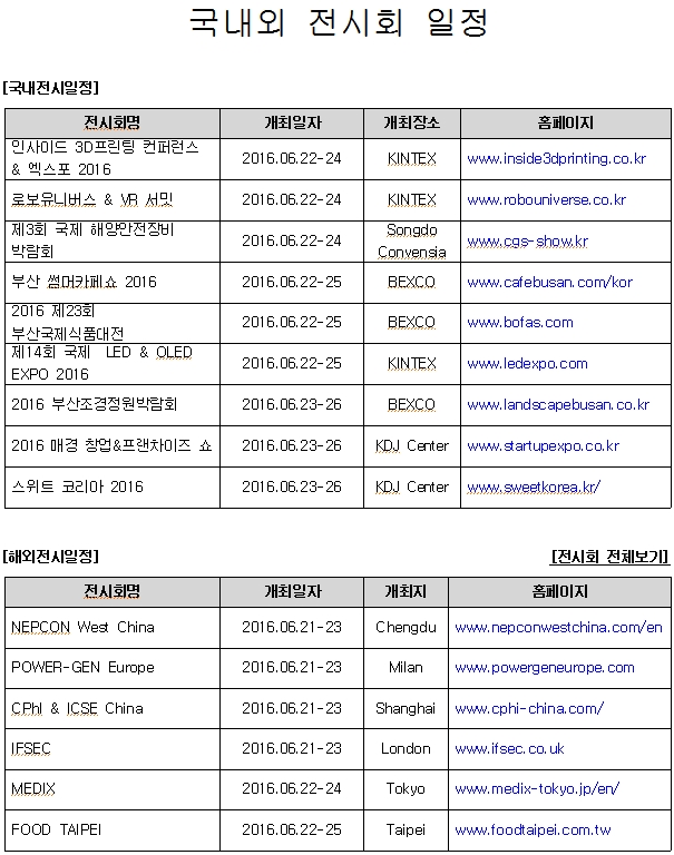 | 제목 | [안내](진흥회) 2016년 6월 4주 전시회 일정 안내 |