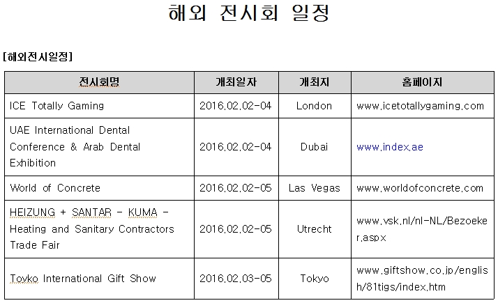 | 제목 | [안내](진흥회) 2016년 2월 1주 전시회 일정 안내 |