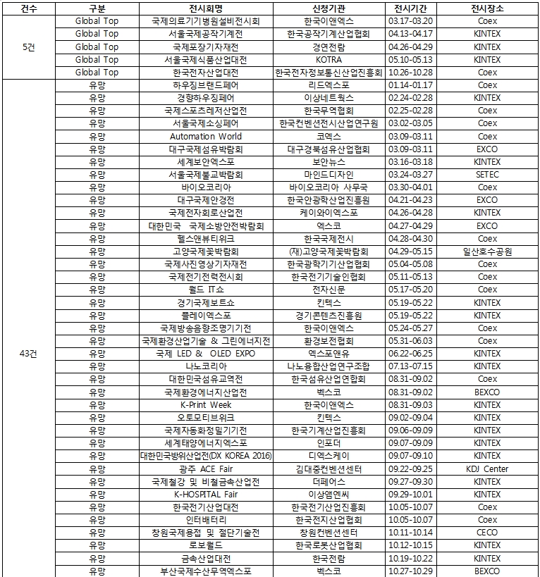 2016년도 국내전시회 개최 지원사업 선정결과 발표