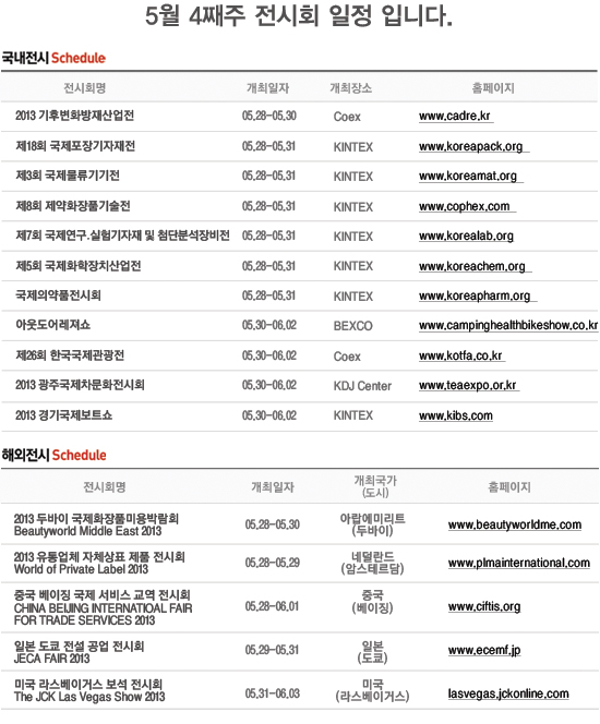 [안내](진흥회) 5월 4째주 전시회 일정 안내