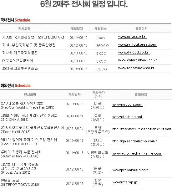 [안내](진흥회) 6월 2째주 전시회 일정 안내