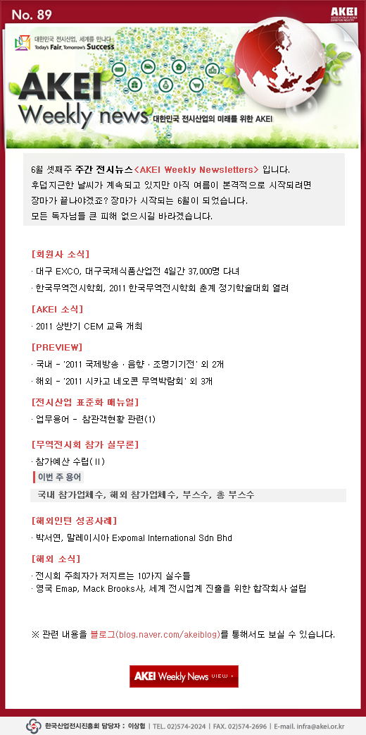 | 제목 | [안내](진흥회) WN 89호 ' 전시회 주최자가 저지르는 10가지 실수들' 외 |