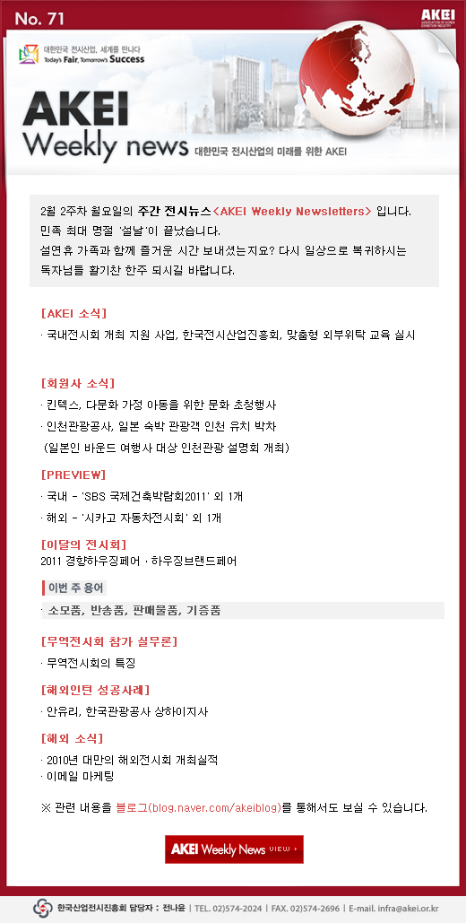 | 제목 | [안내](진흥회) WN 71호 '한국전시산업진흥회, 맞춤형 외부위탁 교육 실시' 외 |