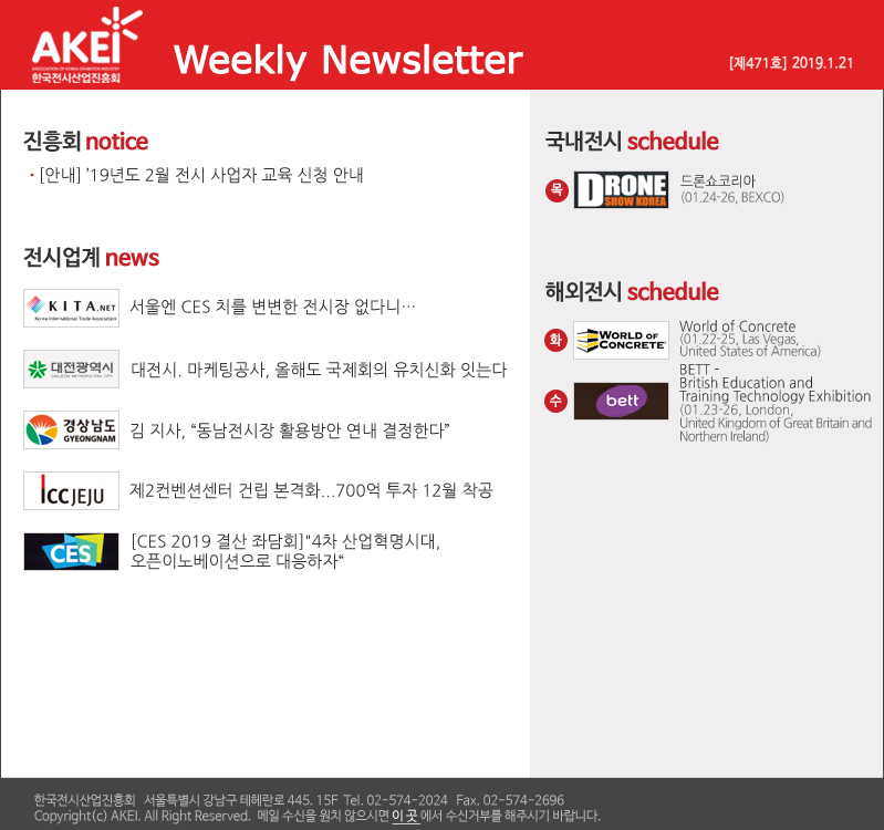 - 다음글[제470호] AKEI Weekly News Letter 470호 19.01.14